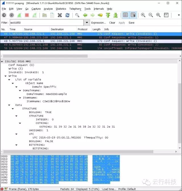 5、由服务端向客户端发送CommandTermination,对应MMS的InformationReport请求,该请求是非确认,无需客户端应答,所以再没有后续的报文,至此增强安全的操作前选择模型就已经初步完成。